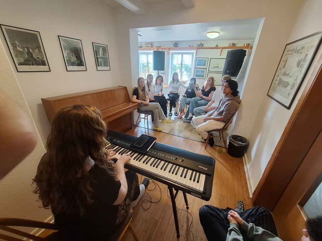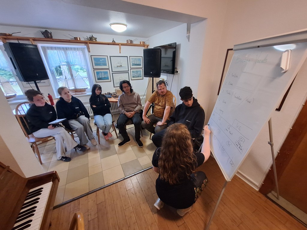 Anschließend begannen die straff durchgeplanten Proben für das Konzert am nächsten Tag. Es galt, alle Stücke konzertreif zu machen. Mit vielen Gänsehautmomenten kristallisierte sich ein sehr attraktives Programm heraus. Es lohnt sich auf jeden Fall, das Konzert zu verfolgen!