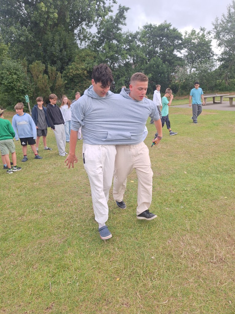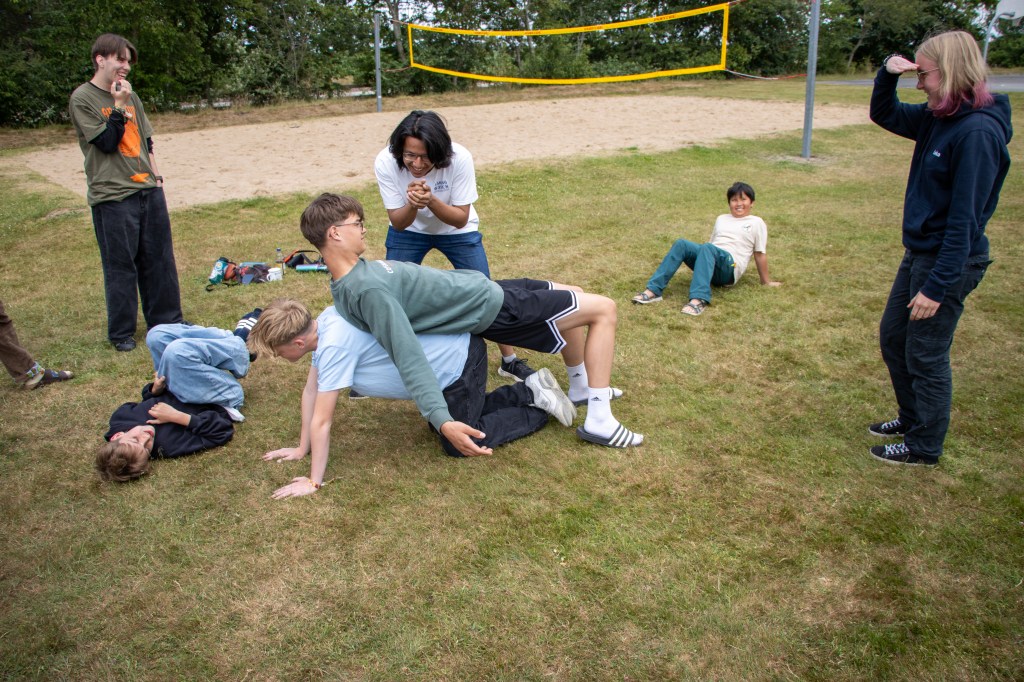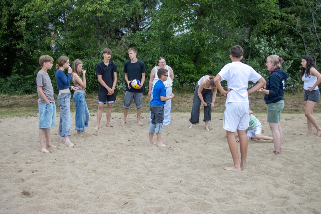 Beim Stand von 4:3 für die Betreuer bei Team vs. Teilis standen sich die Mannschaften beim letzten Tageswettbewerb gegenüber. „Hau weg das Ding“ wurde gespielt, wo es galt seine Schuhe beim Schaukeln möglichst weit weg zu schleudern. Um den Teilis die Chance auf den Sieg zu geben, zählte der heutige Wettbewerb doppelt. Mit einem furiosen Versuch von Yannis entschieden die Beutreuer den Gesamtsieg für sich.