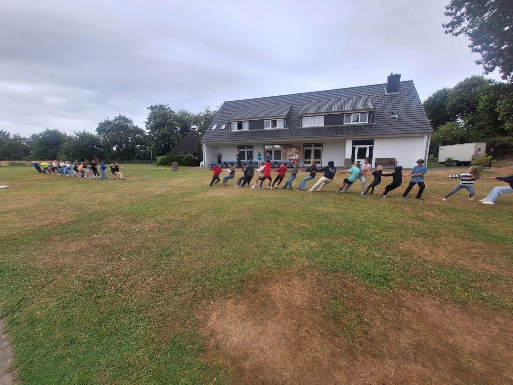 Parallel wurde auf der Wiese gespielt und getobt, wenn es zeitweise regnete, verlagerten sich die Aktionen auch in die Häuser