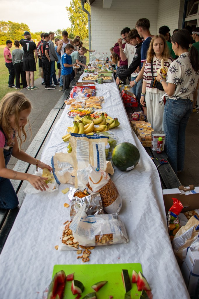 Wegen eines Missverständnisses mit der Küche hatten wir zu wenig Fingerfood für das Abendessen. Steph, Pit, Franka und David fuhren deswegen schnell nach Wyk und kauften für 170 Leute für ein Abendbuffett ein, das von allen dankbar angenommen wurde